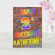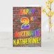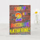 L'avant de cette carte de voeux vibrante, attrayante et amusante sur le thème de l'anniversaire comprend le message "HAPPY 2ND ANNIVERSAIRE" avec des lettres ayant un arc-en-ciel multicolore comme un motif dégradé, et un nom personnalisé couleur jaune, sur un arrière - plan motif mur de briques. L'aspect s'inspire de celui des graffitis ou de l'art de rue dessinés sur un mur. L'intérieur comporte un message d'anniversaire qui peut être customisé. Une carte de voeux d’anniversaire joyeuse, amusante et modifiable comme celle-ci pourrait être donnée pour commémorer le 2e anniversaire de quelqu’un. [~Z0000357]