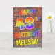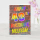 La façade de cette carte de voeux attrayante, amusante et vibrante sur le thème de l'anniversaire comprend le message "HAPPY 43RD BIRTHDAY" avec des lettres ayant un arc-en-ciel multicolore comme un motif dégradé, et un nom personnalisé jaune, sur un arrière - plan motif mur en brique. L'aspect est inspiré de celui des graffitis ou de l'art de rue dessinés sur les murs. L'intérieur comporte un message d'anniversaire personnalisable. Une carte de voeux d’anniversaire heureuse, amusante et customisée comme celle-ci pourrait être une façon spéciale de célébrer le 43e anniversaire de quelqu’un. [~Z0000357]