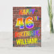 L'avant de cette carte de voeux passionnante, attrayante et vibrante sur le thème de l'anniversaire comprend le message "HAPPY 46TH BIRTHDAY" avec des lettres ayant un arc-en-ciel multicolore comme un motif dégradé, et un nom personnalisé jaune, sur un arrière - plan motif en brique. L'aspect est inspiré de celui des graffitis ou de l'art de rue dessinés sur les murs. L'intérieur comporte un message d'anniversaire customisé. Une carte de voeux d'anniversaire amusante, heureuse et modifiable comme celle-ci pourrait être une façon spéciale d'envoyer un message d'anniversaire à quelqu'un qui célèbre son 46e anniversaire. [~Z0000357]