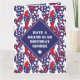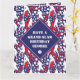 Rouge, bleu et blanc Joyeux Anniversaire carte pour joueur de Pickleball avec motif de pickleball rouge, bleu et blanc sur bleu marine. Texte personnalisé