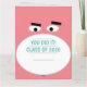 Grand drôle Happy Graduation classe de 2023 visage masque de bienvenue Carte. Carnet d'yeux humoristique pour les élèves du secondaire, de troisième cycle, de troisième cycle, d'université, etc. Ajoutez votre propre message personnalisé à l'intérieur et envoyez-le en ligne directement de Zazzle au destinataire. Couleurs arrière - plan et texte personnalisées. Carte surdimensionnée extra. Aussi disponible en d'autres tailles. Carte symbolique en période de quarantaine et de distanciation sociale.