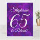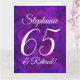 Elegant Purple 65 et Retraité Happy Retirement Carte Grande Taille C'est une carte spéciale élégante Elegant Purple art retraite spécialement conçue pour vos amis qui ont 65 ans et prennent leur retraite! Personnalisez cette carte avec leur nom et tous les noms de leurs collègues à l'intérieur. Leur nom sera également ajouté à l'intérieur de la carte et vous pouvez customiser l'intérieur avec votre ou vos nom(s) comme donateur/donneur de carte. Associez cette carte avec une tasse de retraite ou des cadeaux de notre magasin! Votre ami adorera cette carte de retraite élégamment conçue.