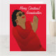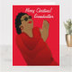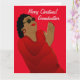Cette belle carte présente une grand-mère afro-américaine en prière portant une robe rouge. Obtenez cette carte de Noël chaleureuse pour votre grand-mère à temps pour Noël.