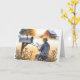 Une vieille femme dans un casquette en paille est assise sur un tabouret à côté des fleurs sauvages, lisant une lettre à côté d'une boîte aux lettres ouverte. Le texte de la lettre sur la couverture avant peut être modifié. Le message intérieur est modifiable.