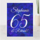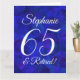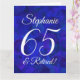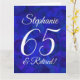 Royal Blue 65 et Retraité Happy Retirement Grande Taille Card C'est une carte spéciale élégante Royal Blue art retraite spécialement conçue pour vos amis qui ont 65 ans et prennent leur retraite! Personnalisez cette carte avec leur nom et tous les noms de leurs collègues à l'intérieur. Leur nom sera également ajouté à l'intérieur de la carte et vous pouvez customiser l'intérieur avec votre ou vos nom(s) comme donateur/donneur de carte. Associez cette carte avec une tasse de retraite ou des cadeaux de notre magasin! Votre ami adorera cette carte de retraite élégamment conçue.