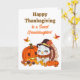 This Thanksgiving card for a granddaughter featuring a cute baby turkey and pumpkin surrounded by autumn leaves and candy corn turkeys creates a warm, festive way to celebrate the season. This playful fall design is perfect for sharing love, gratitude, and sweet holiday wishes with your granddaughter, reminding her how thankful you are for her.