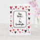 This card shows a white background filled with hearts in many sizes, scattered around the edges like a cheerful border 🥰. The hearts look like they were painted with a watercolor brush, with visible strokes and soft color changes. You’ll see reds, blush pinks, coral tones, and a few very dark plum hearts that add contrast. In the center there’s a rounded rectangle frame in textured light gray, neatly placed and easy to notice. Inside it, the text reads “Happy Valentine’s Day Granddaughter” in a flowing, handwritten-style look, printed in deep charcoal and centered on the card. The little hearts and the gentle colors make it feel like a warm hug, which is a sweet way to show love and appreciation for your granddaughter ❤️. It’s a meaningful card because the message is direct and caring, and the surrounding hearts quietly reinforce it without taking over.