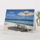 Carte photographique d'un parapluie de plage et des sièges - parfait pour les vacances, adieux & retraites - customisez le message avant et intérieur. Grande taille parfaite pour les adieux de bureau.
