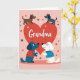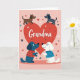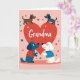 This card shows a large crimson heart in the center with the word “Grandma” written across it in white, flowing letters. Around the heart are four happy, cartoon-style dogs that look like they’re celebrating together. At the bottom, a deep teal dog wears a cherry-red sweater with tiny black hearts, and a creamy white dog wears a soft blue sweater with heart shapes. Both are facing upward with wide smiles, as if they’re reaching toward the big heart. Near the top, a small chocolate-brown dog and a slate-gray dog walk along the heart’s curve, adding a sweet, lively touch. The background is blush pink with little hearts scattered around in red, white, and blue, like gentle confetti. It feels meaningful because it’s affectionate and cheerful without being too serious, a simple way to show love for Grandma 🥰❤️. Hope it helps you share your Valentine’s Day sentiments.