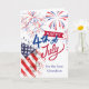 Pour le meilleur grand-fils. Bonne carte de voeux en papier 4 juillet avec feu d'artifice explosant en rouge et bleu avec un drapeau américain en mauvais état. Couleurs patriotiques avec les étoiles et les rayures. Customisez le texte inférieur sur la couverture comme vous le souhaitez. copyright © Shoaff Ballanger Studios, 2025.