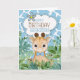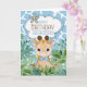 Votre petit petit-fils adorera cette carte d'anniversaire sucrée avec une petite girafe garçon et un thème safari, le tout illustré de bleu clair et de tons verts variés.