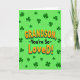 This greeting card features the message “GRANDSON, -You’re So- LoVeD!” centered in large, raised-looking letters that feel like a big hug 💚. The main text is bright orange with a deeper orange shading, and a green shadow underneath adds extra depth against the background. “GRANDSON” sits above the rest of the words, while “LoVeD!” is the most eye-catching line, using mixed capitalization and an exclamation point that reads like an excited grin. Behind the lettering is a lime-green field that brings to mind fresh spring days and a St. Patrick’s Day look ☘️. Deep forest-green shamrocks and clovers are scattered all around, some with three leaves and a few hinting at four, like little lucky surprises. The layout keeps the words in the spotlight while the clovers frame them, giving the whole scene a friendly, affectionate energy. The clovers vary in size and angle, dotting the corners and edges like a patterned border on the bright green background.
