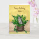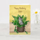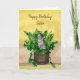 Carte d'anniversaire personnalisée pour soeur. Cute chaton gris mignon assis dans un seau de plantes.