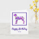 Grande silhouette de chien Dane en violet, rose, jaune et bleu clair motif abstrait moderne. Célébrez la journée spéciale de votre bébé à fourrure avec notre adorable carte personnalisée, spécialement conçue pour les fêtes d'anniversaire de chiot ou pour un amoureux des chiens! Le message d'anniversaire à l'intérieur peut être changé à tout ce que vous voulez.