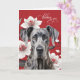 When a fellow dog lover is on your mind, send off this cheerful and bold Thinking of You card with a lovely Great Dane dog looking beautiful against bold white lily flowers and red.