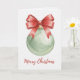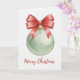 A charming Christmas card featuring a soft green bauble topped with a classic red bow. Painted in a gentle vintage style that reflects the warmth of Tradition Treasures, this design brings a cosy festive mood to your holiday wishes. A simple and elegant card for anyone who enjoys timeless Christmas decorations.
