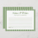 Fraîche, moderne et chic sans effort, cette carte de conseil aux mariages rayées vertes est parfaite pour capturer des notes chaleureuses des clients. Avec un texte serif élégant, une ligne de nom personnalisable et un espace épuré pour écrire, c’est un ajout élégant à toute douche nuptiale, mariage de jardin ou célébration de couple. Le vert doux apporte une touche naturelle et apaisante, tandis que la disposition la garde intemporelle. Une tenue raffinée que vos invités adoreront remplir et que vous aimerez regarder en arrière.
