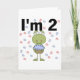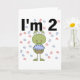 Un adorable design de 2ème anniversaire sur T-shirts, cartes, autocollants, magnets, sacs fourre-tout, et plus encore avec une grenouille verte tenant un cupcake bleu gelé et texte qui dit "Je suis 2".