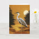 This card is illustrated with a Grey Heron set against a golden sunset.