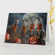 Libérez l'esprit effrayant avec ce design effrayant d'Halloween mettant en vedette une meute de chiens sous un ciel sombre éclairé par la lune, entourés de chauves-souris volantes et de citrouilles lumineuses. Parfait pour ceux qui aiment une touche de plaisir effrayant avec leurs amis à fourrure !