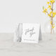 Le bord gauche de cette élégante carte de remerciement mariage à plat présente une aquarelle grise décorée d'une fausse parties scintillant argentée. Le texte est en script de charbon de bois et sans serif polices sur un arrière - plan blanc.
