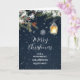 Joyeux Noël pour son petit-fils sa carte de famille avec la verdure d'hiver rustique, lanterne vintage et flocons de neige motif sur un ciel bleu marine.