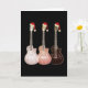 Carte de Noël cool rustique, vintage rétro électrique guitare art pour les amateurs de musique, en particulier les garçons adolescents. Festive Retro dessins d'art rustique de trois guitares en brun éthérée translucide avec des chapeaux de Père Noël drôles créés par l'artiste Catherine Sweetman