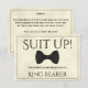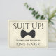 Cette carte de proposition de garçon d'honneur amusante est un excellent moyen de demander à un neveu ou à un autre enfant spécial d'être le garçon d'honneur à votre mariage. Caractéristiques d'un design mignon avec un fond marbré ivoire qui ressemble à du papier fin, un nœud papillon noir et le texte : Habillez-vous ! Vos services sont sollicités en tant que garçon d'honneur !