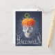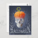 Carte d'Halloween par Alfoart avec le crâne, citrouille, arrière - plan sombre.