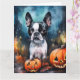 Carte Halloween Boston Terrier avec citrouilles effrayan