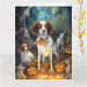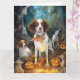 Carte Halloween Brittany Spaniel avec citrouilles effray
