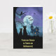 De chez nous ou chez vous ! Parlez-le comme vous le souhaitez, vous pouvez modifier le texte avant. Une jolie carte Halloween Happy avec une maison hantée fantaisiste ou maison et chats.