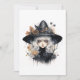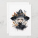 Carte Halloween en style aquarelle de sorcière victorienne mignonne avec des accents noirs et orange.
