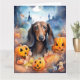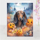 Carte Halloween de teckel avec des citrouilles effrayant
