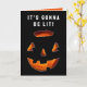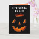 Drôle carte d'Halloween avec Jack-o-lanterne éclairé brillant.