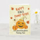 Joyeuse Pompe-Grins Automne. Un Jack o' Lantern avec un mignon grin et un casquette sorcier décorent la couverture de cette carte de voeux d'Halloween pour une petite-fille. Customisez le texte inférieur sur la couverture au besoin. Copyright © Shoaff Ballanger Studios, 2022.