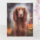 Carte Halloween Irish Red Setter avec citrouilles effray