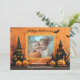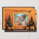 Voici The Éffrayant Snap-O-Lantern, une carte d'Halloween à la fois effrayante et festive et délicieusement personnelle ! Cette carte est un régal absolu (pas de tours ici) ! Avant et au centre, vous pouvez insérer votre photo customisée - que ce soit votre adorable petit monstre, un groupe de gobelins malicieux (alias vos amis), ou même votre chat qui ne se doute pas de leur costume de vampire. À côté de la photo se trouvent de hautes maisons hantées, des lustres électriques et des chauves-souris sournoises qui donnent le ton parfait d'Halloween. L'effet de papier déchiré le long des bords donne juste la bonne quantité de charme éffrayant, comme si la carte elle-même fait partie d'un mystérieux parchemin orthographique. Les mots Happy Halloween flottent élégamment au-dessus de la scène, en s'assurant que le destinataire entre dans l'esprit avant même qu'ils atteignent l'écharpe de bonbons. Et voici la magie : du texte personnalisé des deux côtés ! Vous pouvez transformer cette carte en tout ce que vous voulez. Peut-être "From the Ghastly Gatherings of The Thompson Family" ou "Attention, We’re Coming for Your Candy" - cette carte est entièrement à vous pour vous faire craquer comme vous voulez. Parfait pour envoyer des lunettes éffrayantes ou faire savoir à tout le monde que vos petits monstres ne sont pas à la hauteur. Ce keepsaké est garanti être plus mémorable que ce bonbon bizarre que tout le monde évite au fond du sac de ruse ou de gâteau.