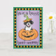Envoyez des salutations d'Halloween avec cette carte d'un mignon chiot Portie dans un Jack-o-Lantern souriant. Idéal pour les enfants de tous âges qui aiment les chiens d'eau portugais et Halloween. Faites une Happy HOWL-oween !