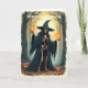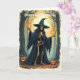 Cette carte de voeux magnifiquement illustrée présente une sorcière squelette d'Halloween classique dans un casquette pointu noir, sous une lune brillante. Parfait pour les amateurs d'art vintage d'Halloween, d'esthétique sorcière et de magie saisonnière. Fait un grand accueil collectible ou réfléchi pour les amateurs d'Halloween.