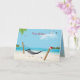 Plage tropicale avec hamac et casquette du Père Noël dans le sable pour Joyeux Noël.