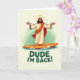 This design shows a long-haired, bearded spiritual figure standing with arms open wide, as if offering a gentle welcome like an old friend 🌷. A soft golden halo glows behind the head against a creamy background, giving the scene a calm, glowing focus. The figure balances on an orange surfboard, gliding over stylized blue-and-white waves that curl like painted ribbons. A cream tunic flows in the sea breeze, and an orange sash drapes over one shoulder, adding a warm accent that feels like a tender touch in the middle of the motion 🐇. In the distance, a light green wash suggests a shoreline, keeping the setting airy and open. Near the bottom, a short casual message appears in dark green lettering, centered and easy to read. The orange surfboard sits diagonally above the text, with foamy wave crests breaking along its lower edge.