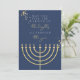 Carte Hanoukka Marine Blue Gold Foil Menorah
