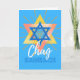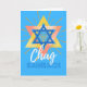 Chag Sameach, Happy Hanoukka carte de voeux avec une grande étoile de David et menorah avec rayons de lumière. Carte graphique moderne et design pour Hanoukka. Copyright © Shoaff Ballanger Studios, 2022.