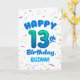 Celebrate their 13th birthday with a bright, cheerful, and personalizable birthday card! This custom name birthday card features a bold number thirteen balloon and colorful confetti.