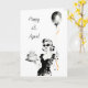 A birthday card for a woman, friend or sister. Happy 28 again, funny aging birthday joke. Inside is some more sarcastic birthday humor. Black and white illustration a woman holding a cake and balloon.