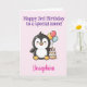 Carte Happy 3rd Birthday Niece, Penguin, Personalized
