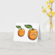 This is a fun design of two apricots. One of the apricots has a face and is looking happy and the other apricot is facing the other way. The apricots both have a stem with a green leaf on it. This happy apricot design looks great on these note cards