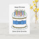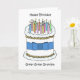 A simple illustration of a white birthday cake, iced with delicate lemon coloured flowers. The cake has a blue bow tied around it and several lit candles on top. The image is set against a white background and is accompanied by the words 'Happy Birthday Great Great Grandpa.