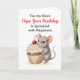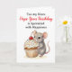 An adorable birthday card for a niece featuring an illustration of a cute little mouse carrying a vanilla cupcake with sprinkles and a cherry on top! All text on this card can be edited in the personalize area.